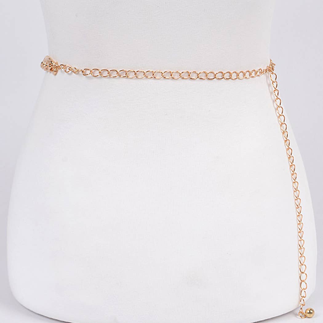 This Symmetric Chain Belt from H&D Accessories is a striking fashion piece. It features a well - crafted design with a central chain that is flanked by multiple smaller chains on either side, creating a perfectly symmetrical and eye - catching pattern. The chains are linked together with precision, giving the belt a cohesive and elegant look. Ideal for accessorizing dresses, tops, or high - waisted bottoms, it adds a touch of glamour and can transform any outfit into a statement look, whether for a night out or a special event.