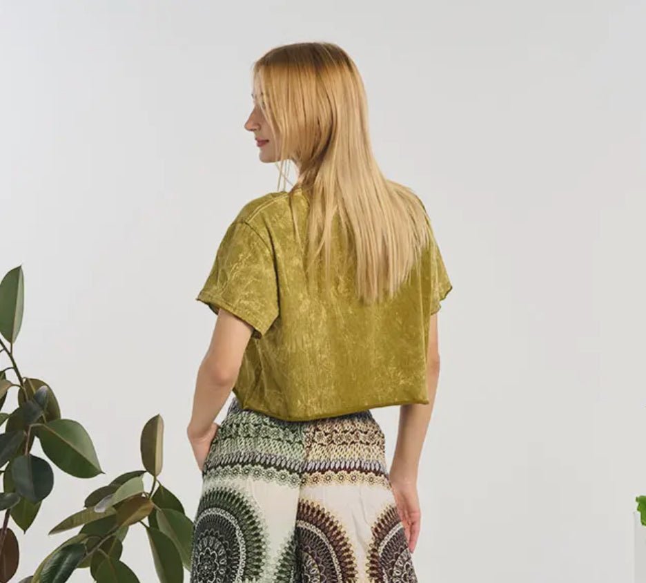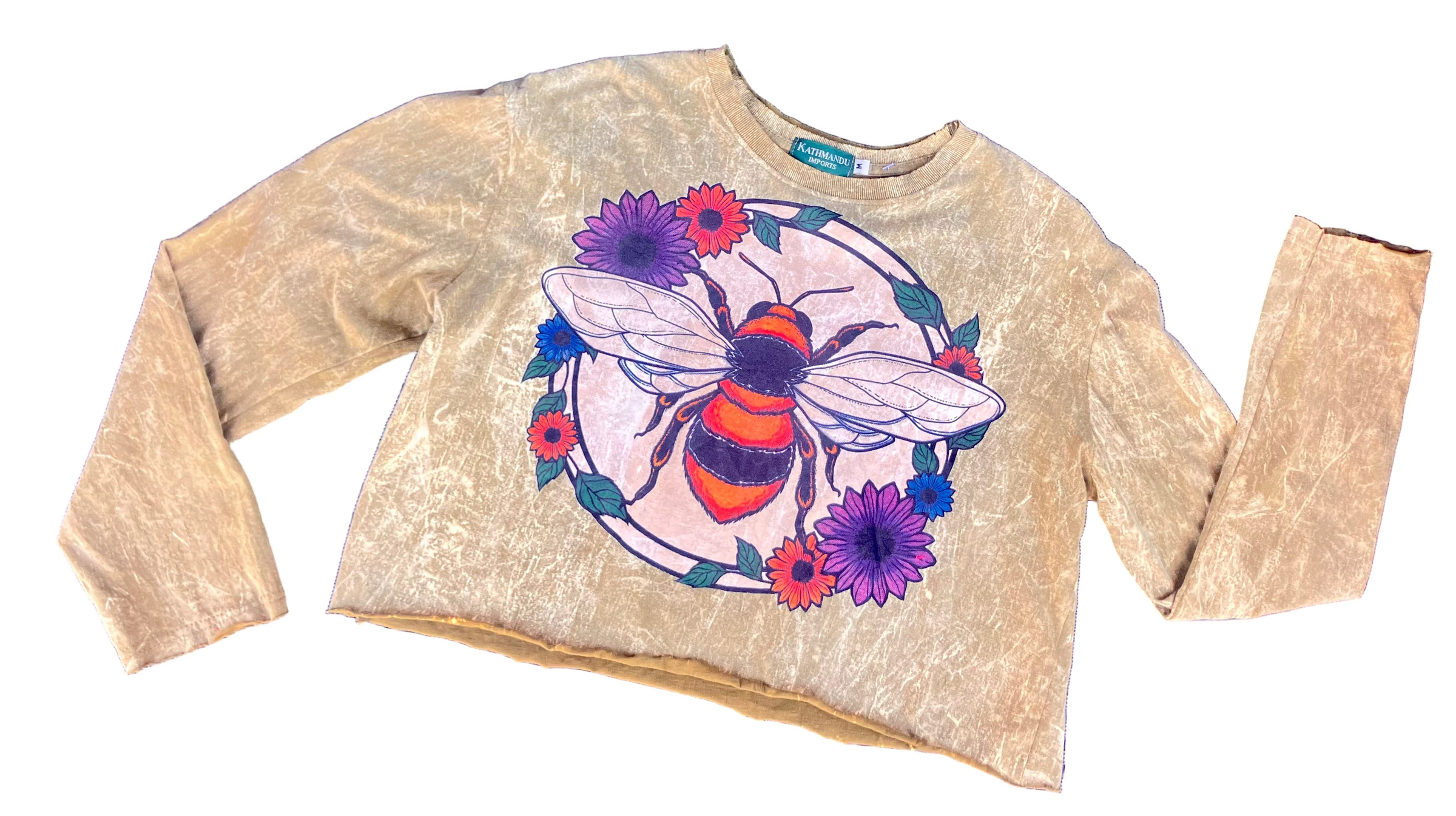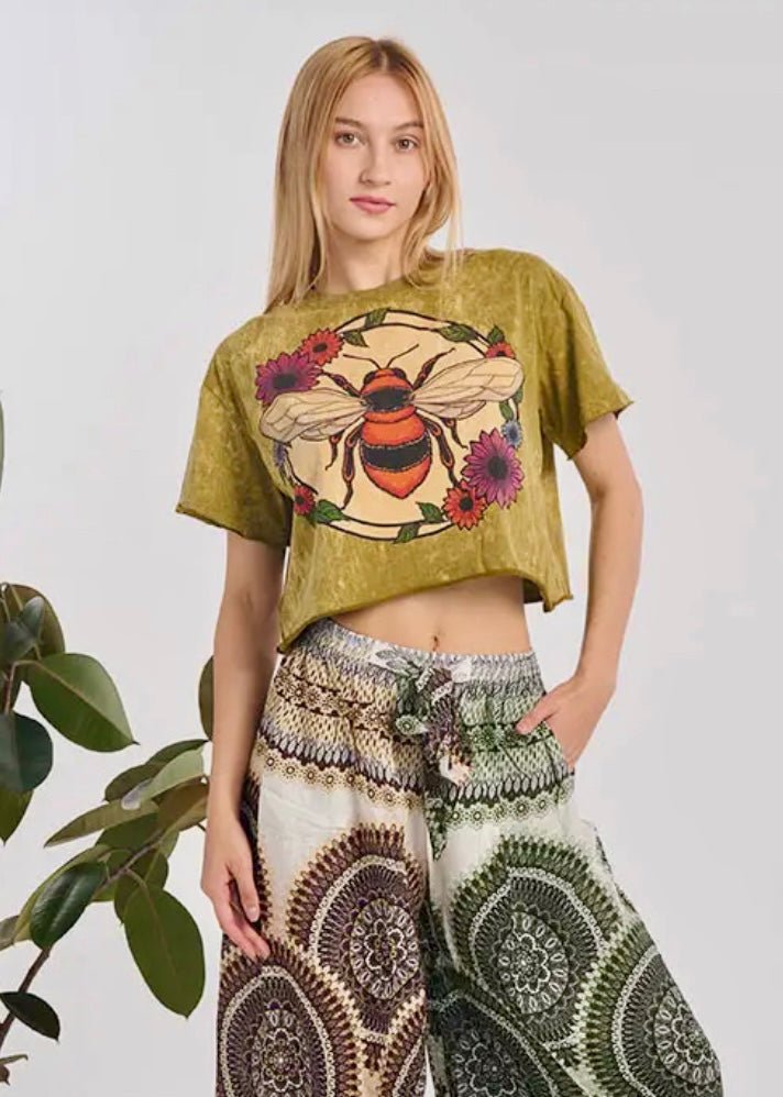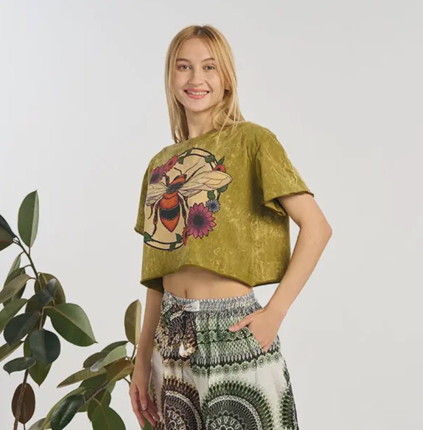 COTTON STONE WASH BEE CROP TOP LONG SLEEVE