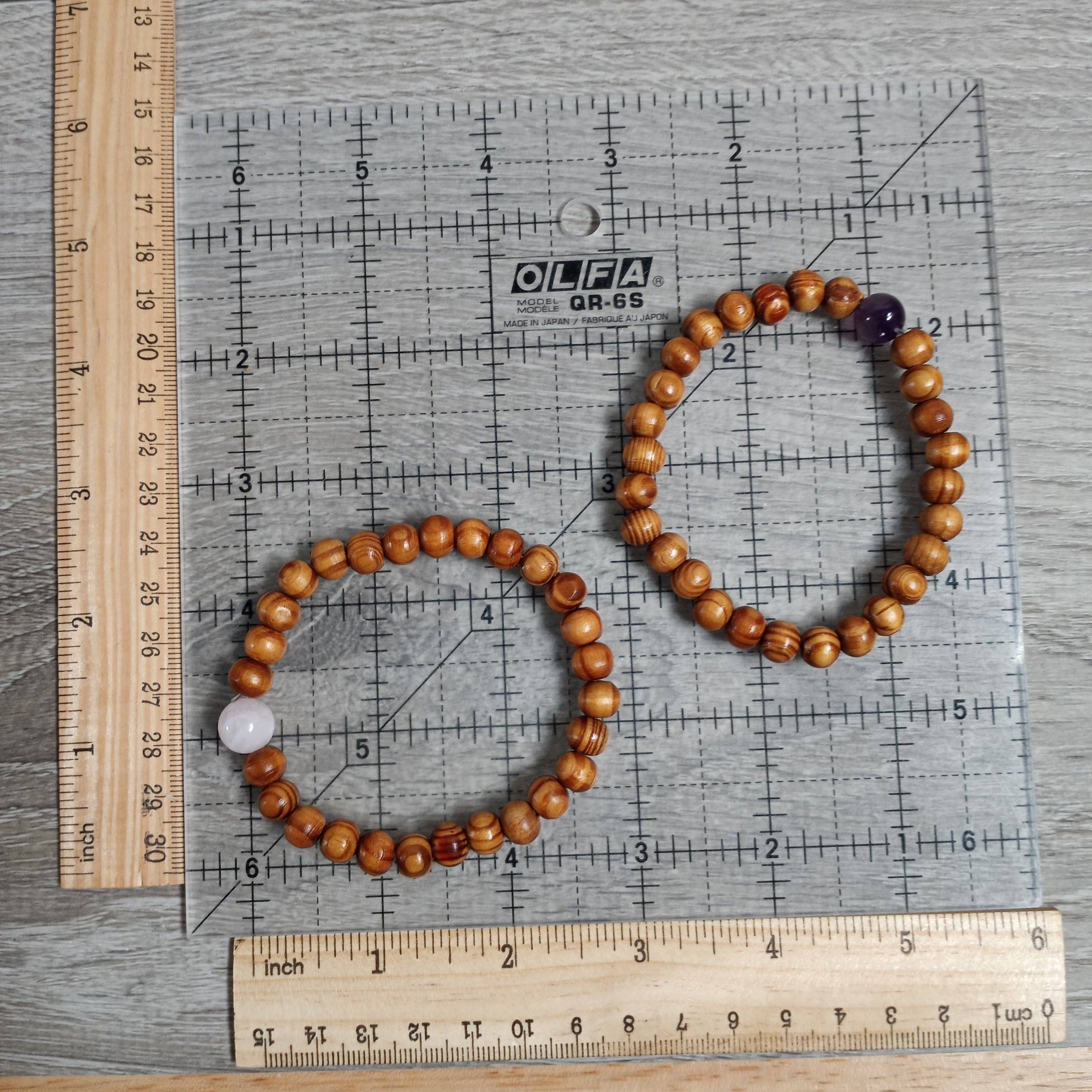 Welcome the perfect balance of natural beauty and versatility with our Assorted Gemstone Wood Bead Stretch Bracelet. This wholesale bracelet features a harmonious mix of polished gemstone beads and earthy wooden beads, strung on a durable, stretchy cord for a comfortable, one-size-fits-most fit. Each bracelet is uniquely crafted, offering a variety of gemstones such as amethyst, aventurine, rose quartz, and more, making them an ideal addition to any retail collection. These bracelets are great for stacking or wearing alone. Sold individually. Some bracelets may be dyed, and some are not dyed. Size and color vary from bracelet to bracelet.