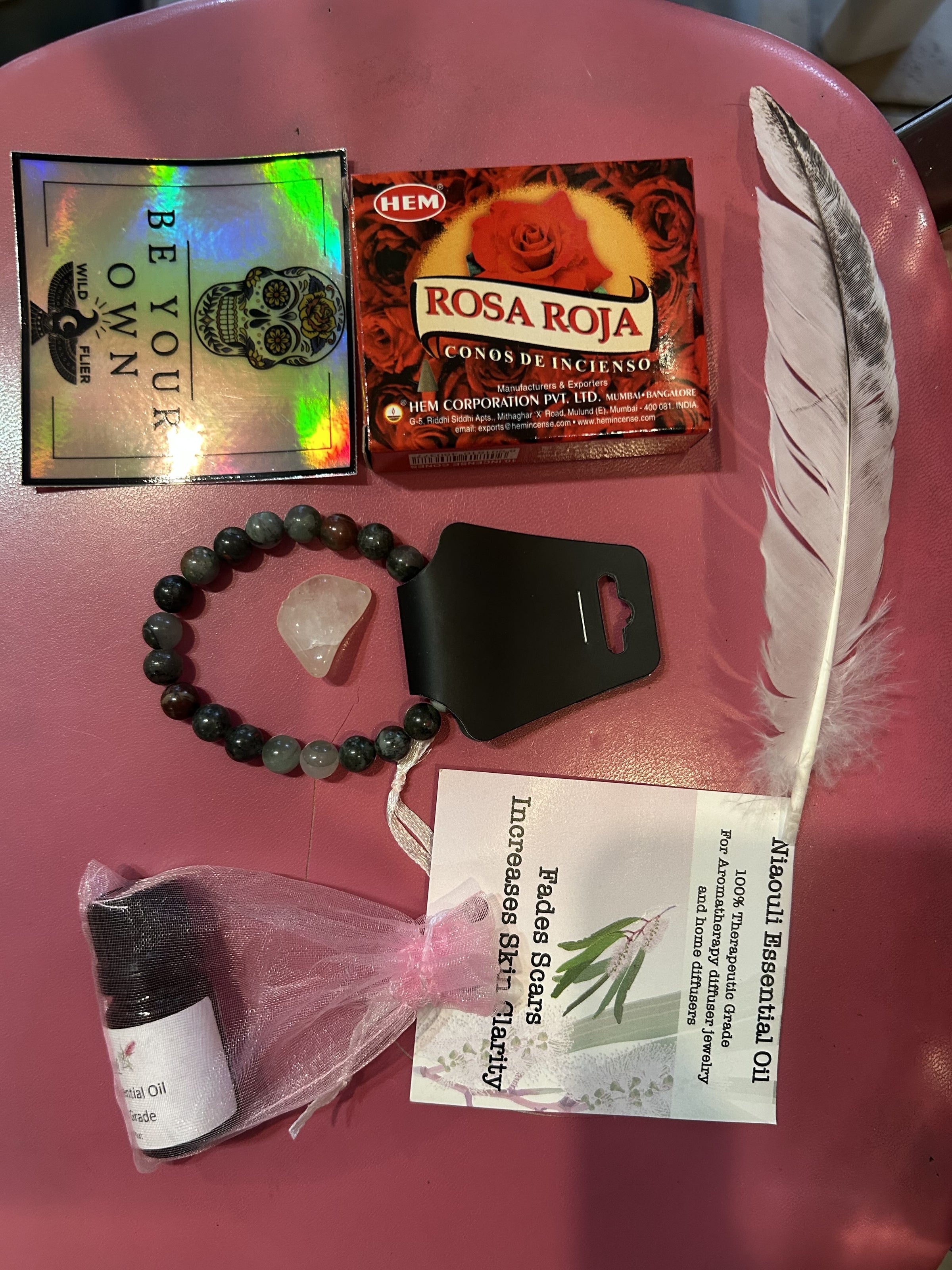 Select your intention — Abundance, Love, or Clarity — and we’ll pair a bracelet, crystal, and incense to support that energy.