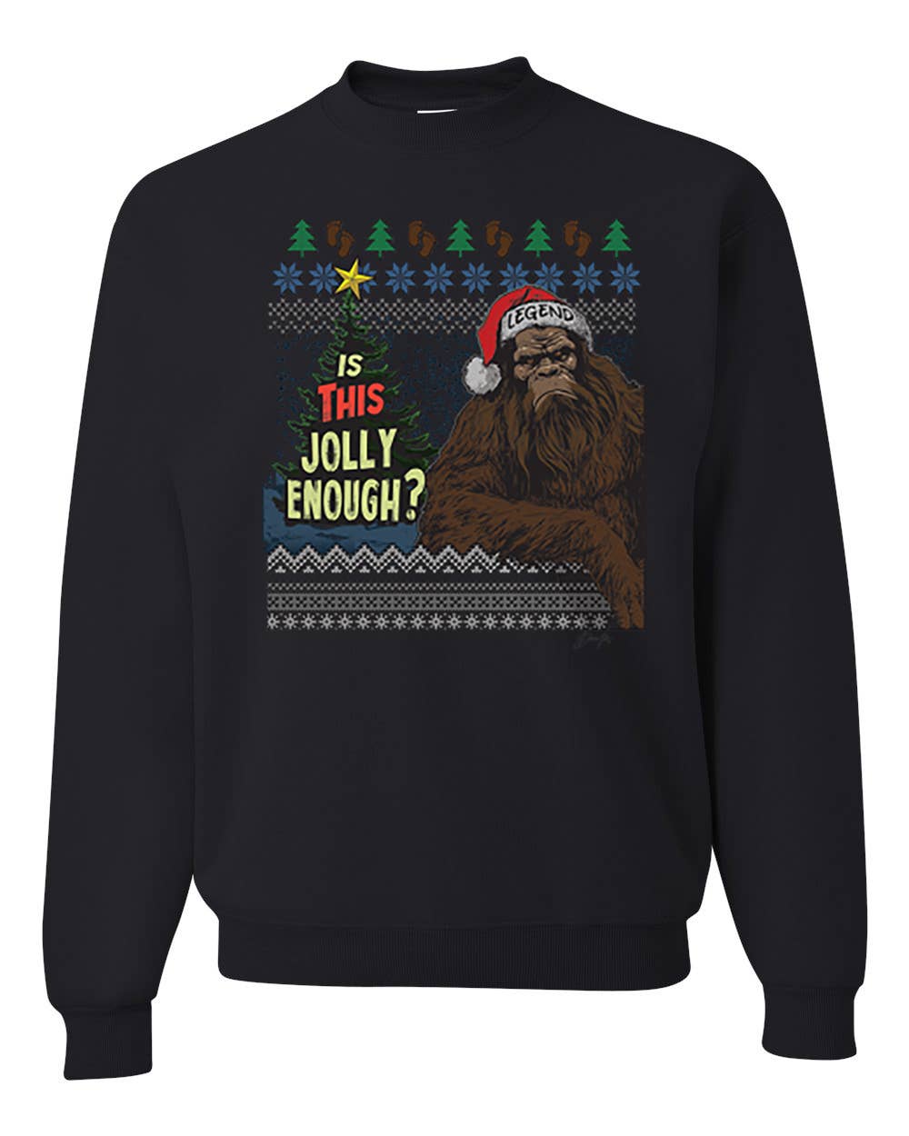 Sasquatch Jolly Enough Sweatshirt Ugly Christmas Sweater: Black
