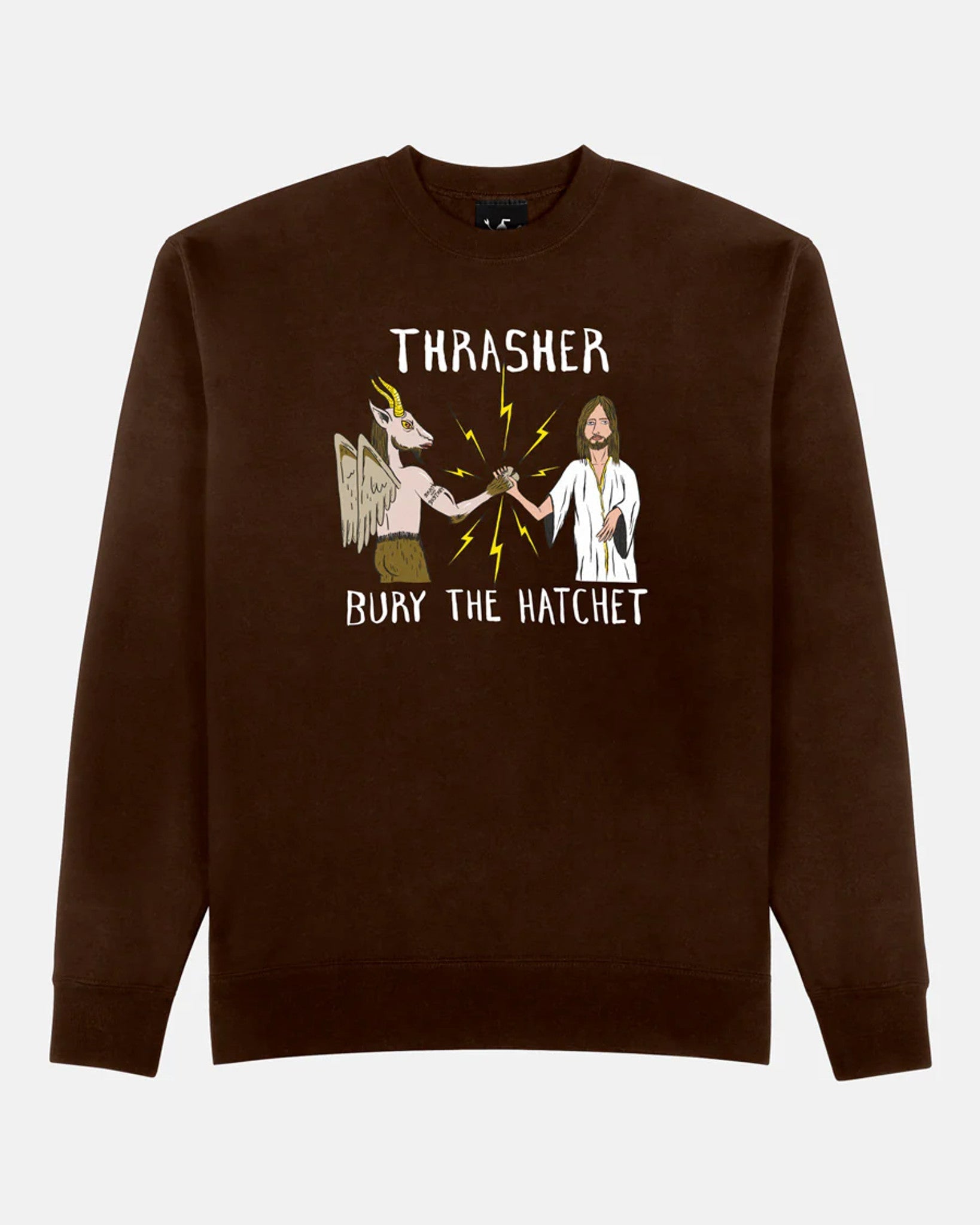 Standard fit crewneck sweatshirt woven from cotton and polyester. Featuring a signature Thrasher x Toy Machine sewn-in label and finished with artwork at center-chest.