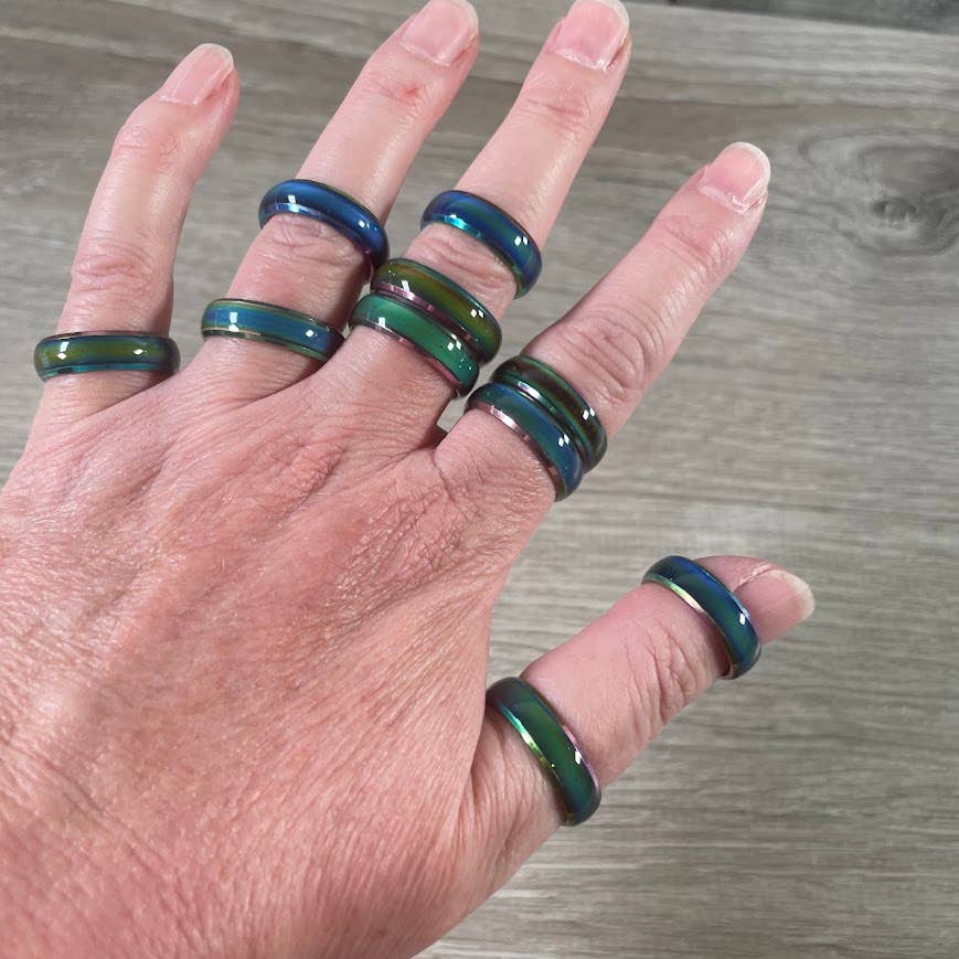 This wholesale stainless steel mood ring shifts colors based on temperature changes, creating a unique piece of jewelry that appeals to a wide range of customers. Crafted from durable stainless steel, it’s a versatile and stylish accessory perfect for crystal retailers, metaphysical shops, and gift stores. The color-changing design makes it both playful and mystical, attracting those who enjoy unique jewelry with a touch of personality. Ideal for resale, this ring offers your customers a fun and affordable way to connect with mood jewelry trends while adding a modern twist to classic metaphysical accessories. Sold individually with a minimum of 3 per style.