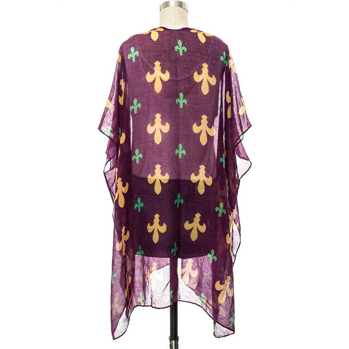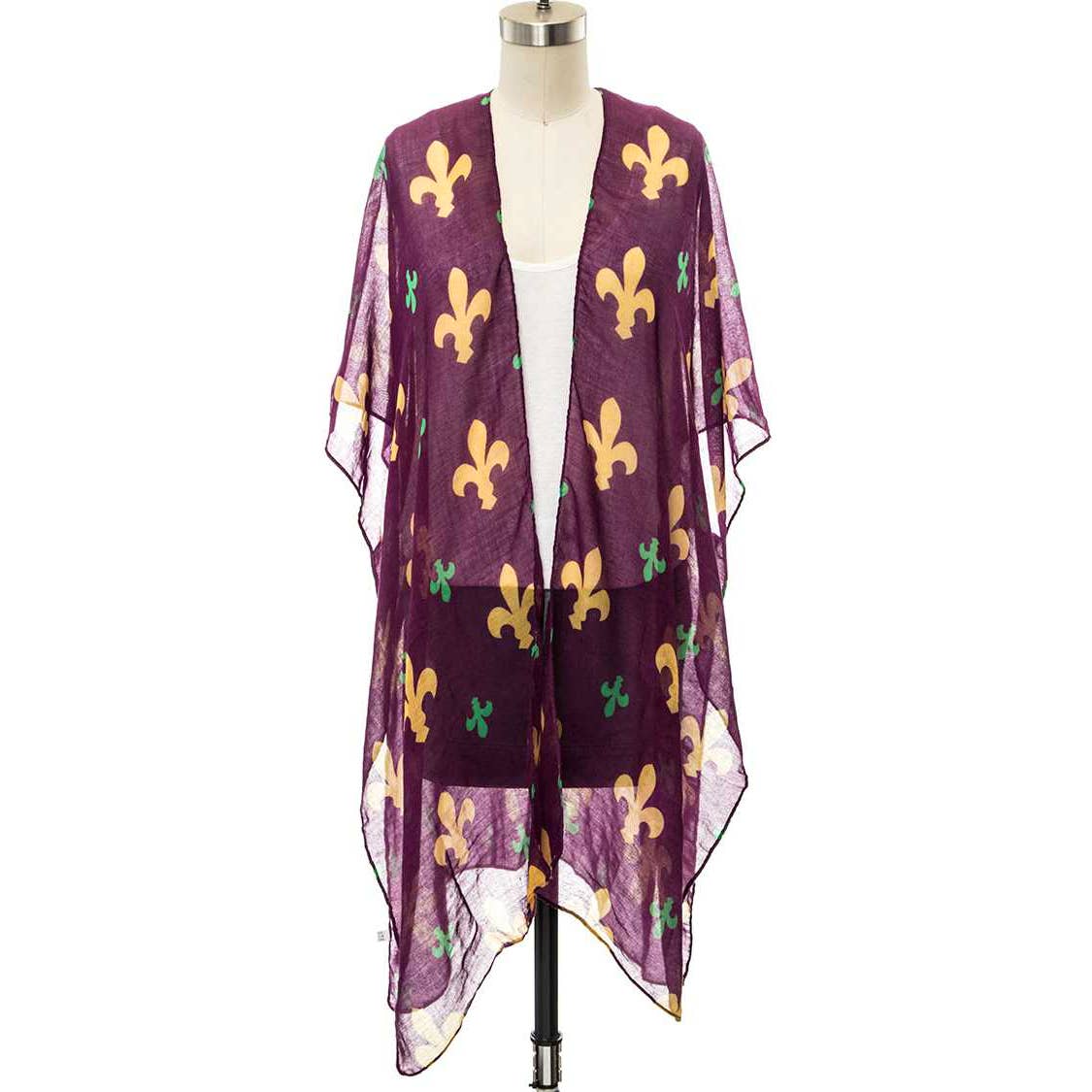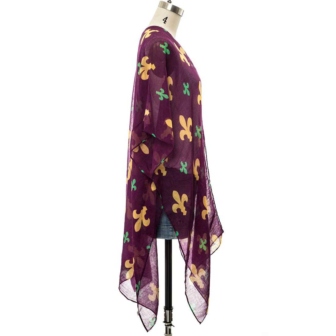 Discover the enchanting world of fashion with Artini Accessories' Fleur De Lis Mardi Gras Print Kimono Cardigan. This kimono is a celebration of style, comfort, and unique design. Made from 100% Viscose, it guarantees an ultra-soft feel against your skin. The cardigan showcases a vibrant Fleur De Lis Mardi Gras print, adding a festive touch to your wardrobe. Ideal for any occasion, this kimono cardigan is a versatile piece that can be styled in numerous ways. Enjoy the blend of comfort and fashion with Artini Accessories.