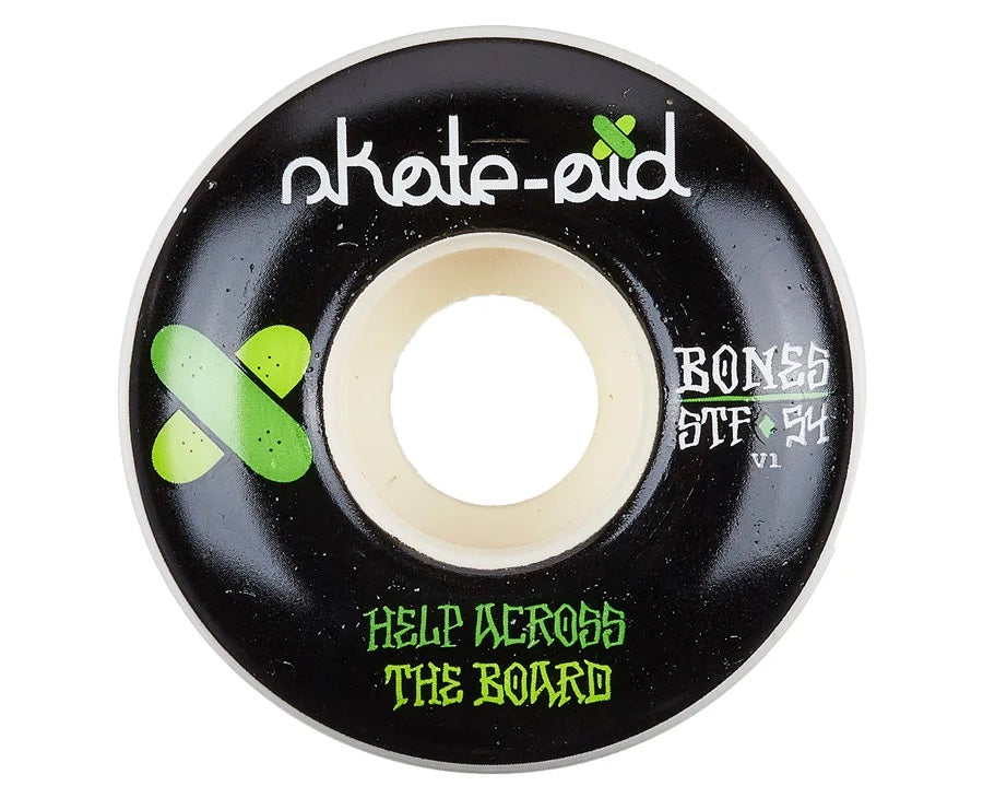 The Bones STF Skate Aid II V1 Wheels are specifically formulated for what you skate. Bones Street Tech Formula gives you more slide-ability and less flat spots. Made in the U.S. at the Bones factory in Santa Barbara, California, Bones STF are skater engineered and designed. Manufactured to be more versatile and durable for an all around best performance. Wheels are sold in sets of FOUR.