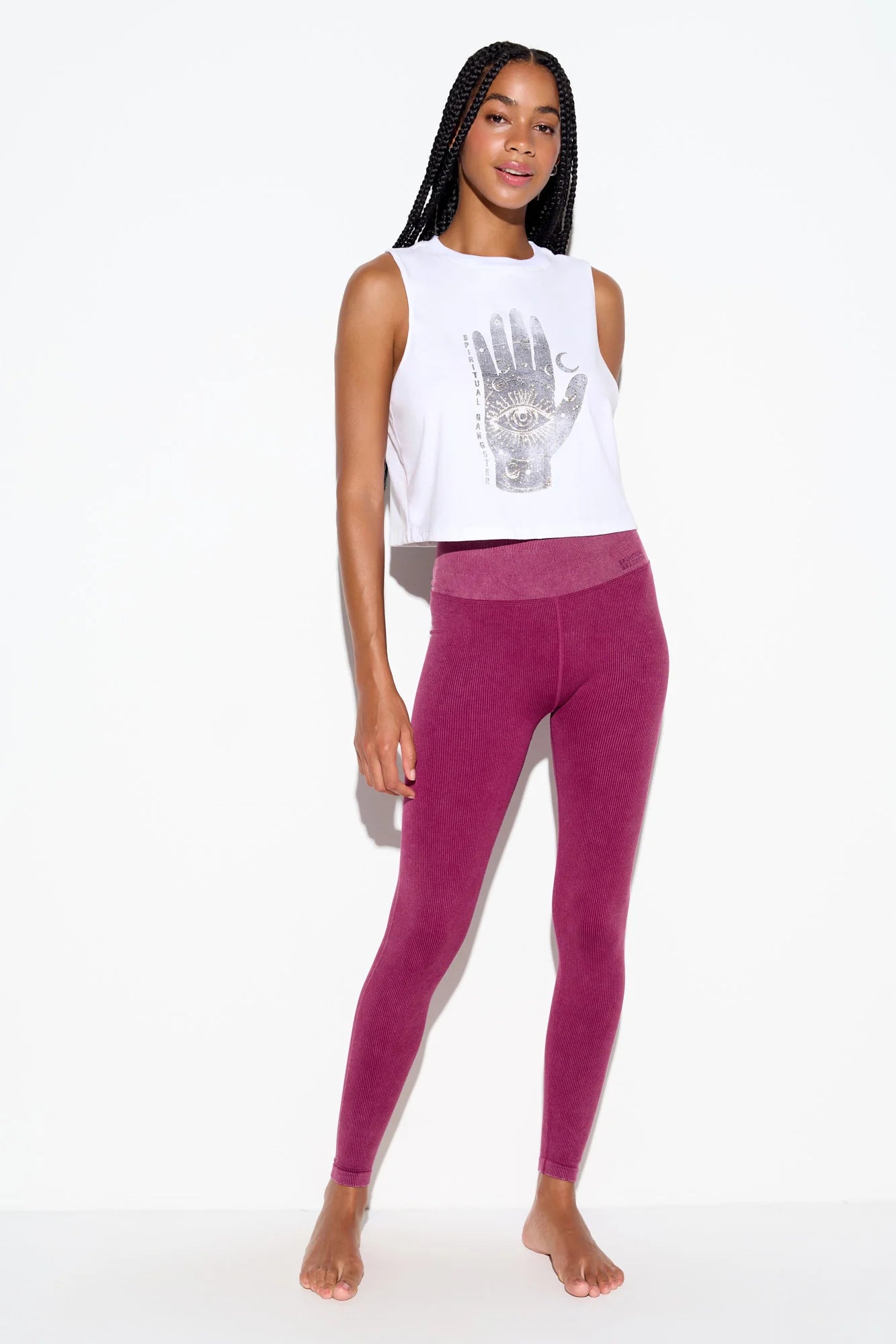 Manifest, protect, heal. The Spirit Crop Tank channels empowering affirmations, with a gold foil embellished incantation graphic and lived-in, vintage feel.
