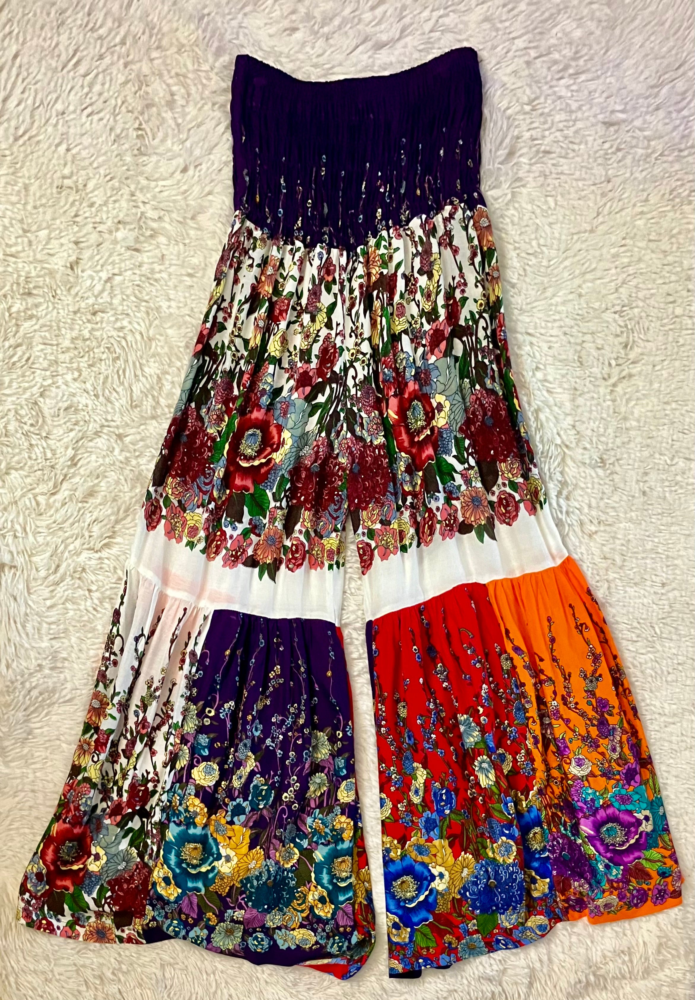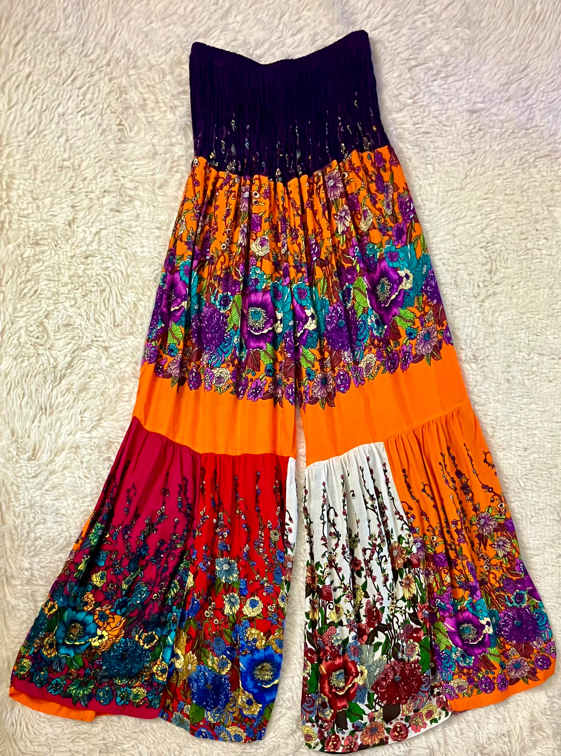 Assorted Patchwork Styles Smocked Bell Bottom Pants