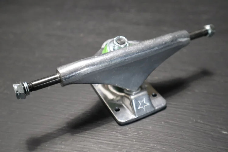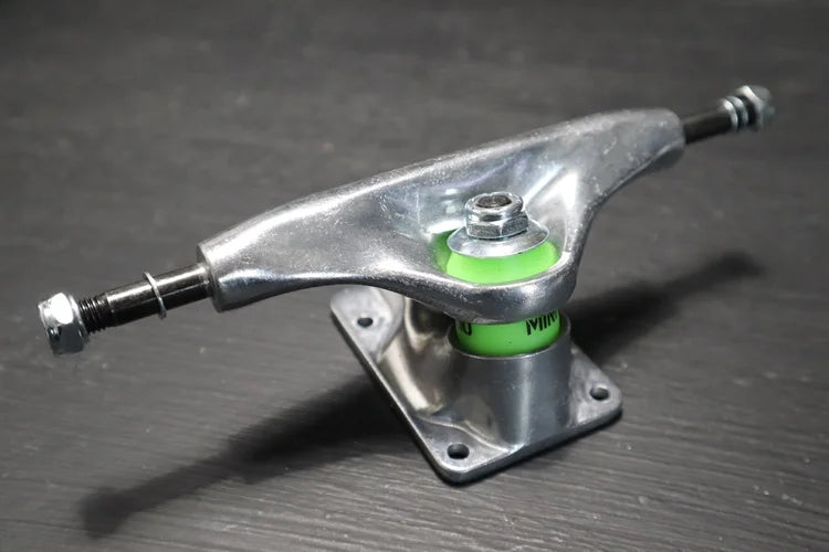 Our new Mini Logo™ high-performance trucks combine strength, stability, and smooth turning in a lightweight design with premium alloys, high-rebound bushings, and precision axles. Developed and tested at Skate One, the shape, materials, and finishes have been refined for MILITANT skaters right from the first turns and grinds -- No break-in time needed!